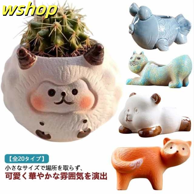 | 陶器製かわいいアニマル鉢。【全20タイプ】 小さなサイズで場所を取らず、可愛く華やかな雰囲気を演出 底穴があり、排水に便利です。通気性がよく、根茎の呼吸が楽になり、植物の健康を保ちます。 植木鉢としてだけでなく、置物としてもお楽しみいただけます 可愛くて毎日見えるところに飾ると、癒しの空間を作り出します | |