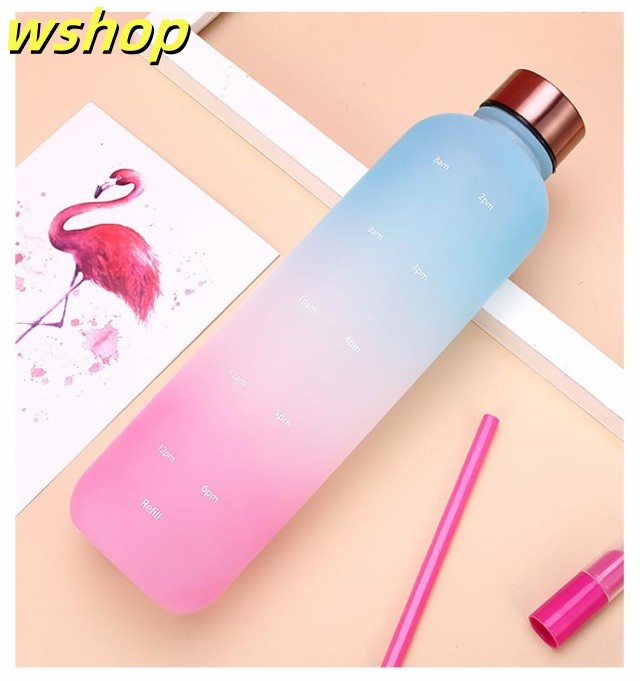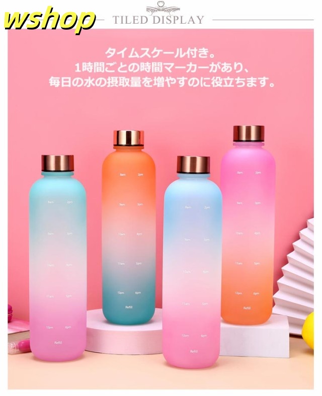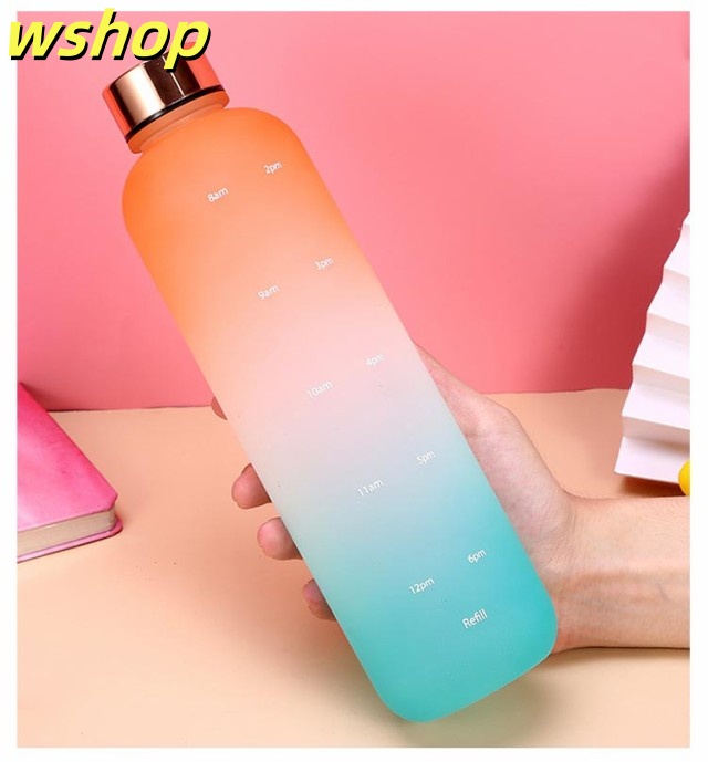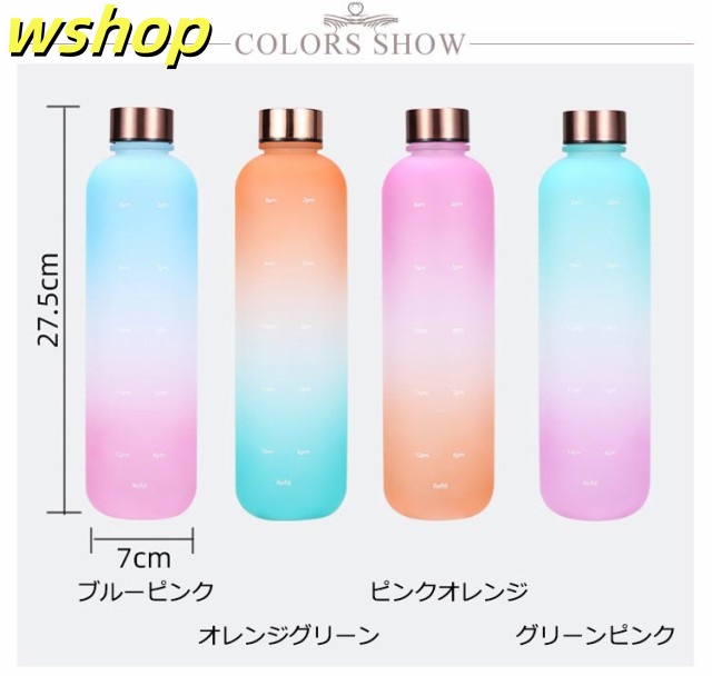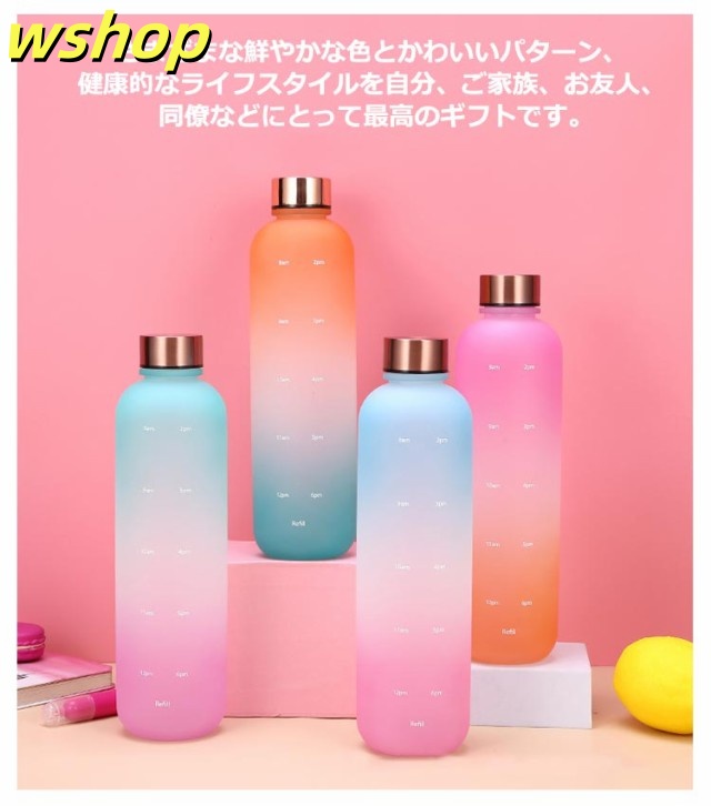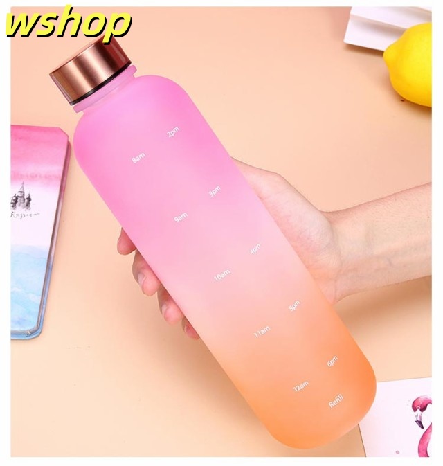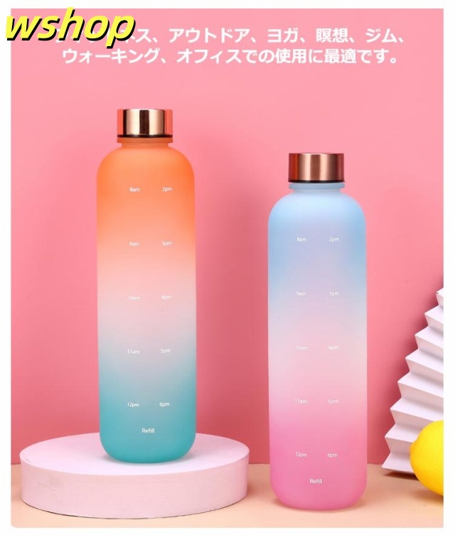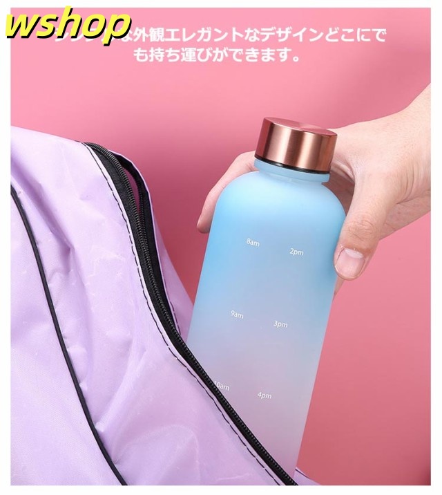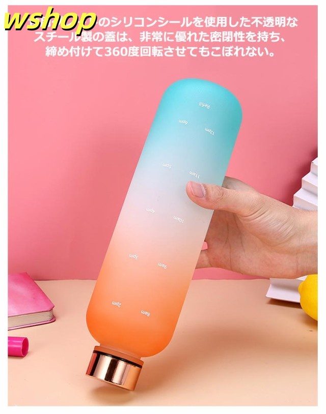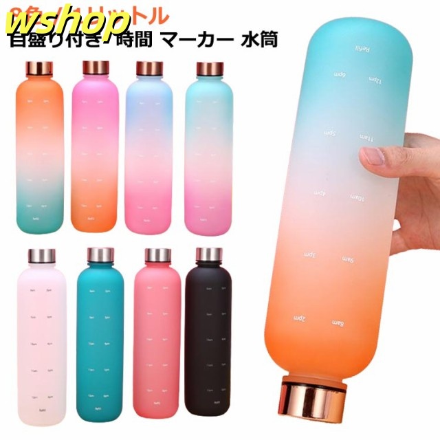 【wshop 】ウォーター ボトル 時間 マーカー 水筒 1リットル スポーツ 直飲み 目盛り付き 1L 1000ml ウォーターボトル タイムマーカー 男女兼用 携帯便利 漏れ防止 子供 大容量 軽量 直飲み 女の子 おしゃれ スポーツ かわいい プラスチック スポーツボトル 通学 通勤