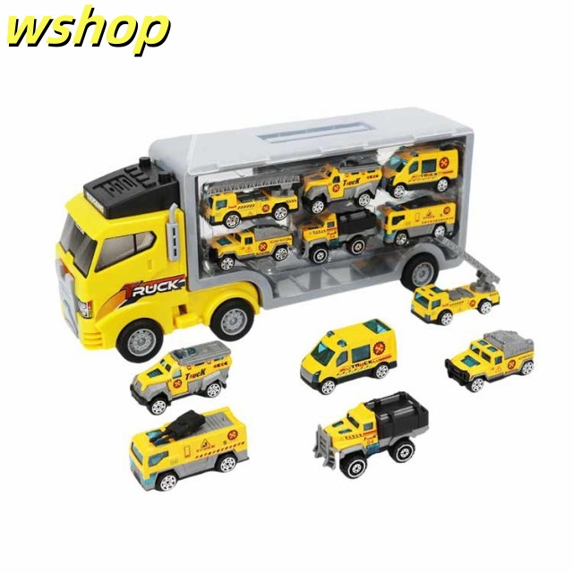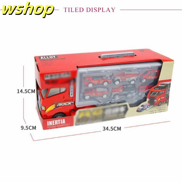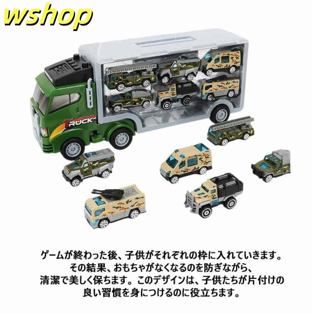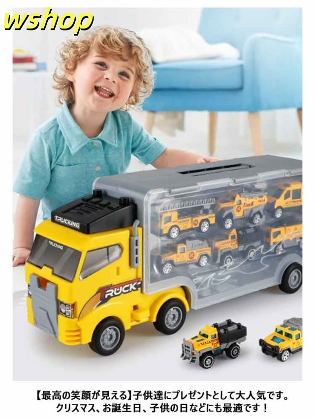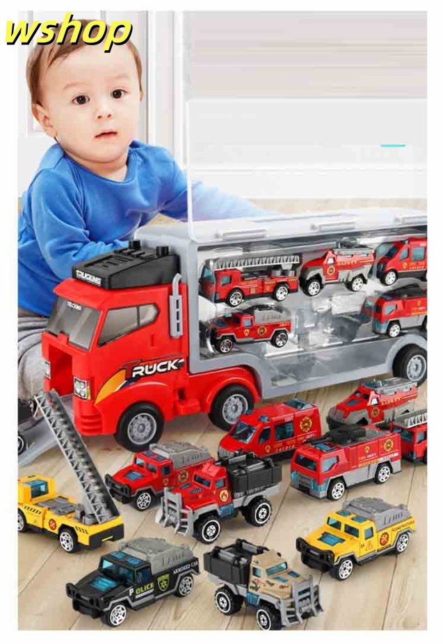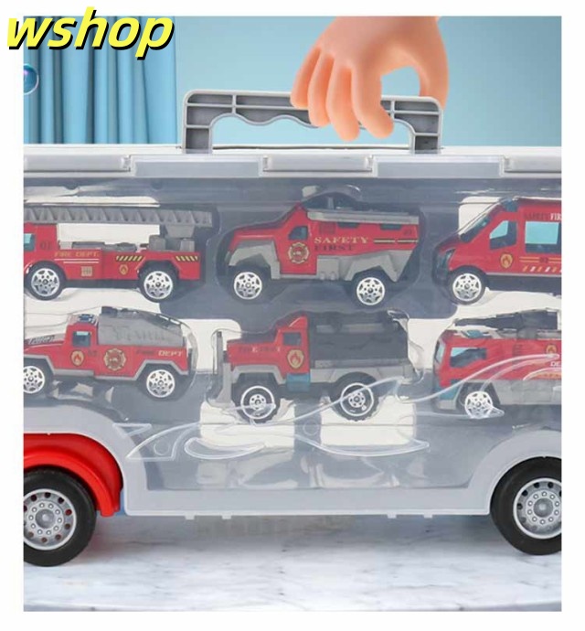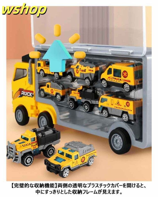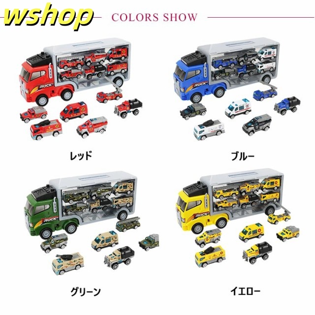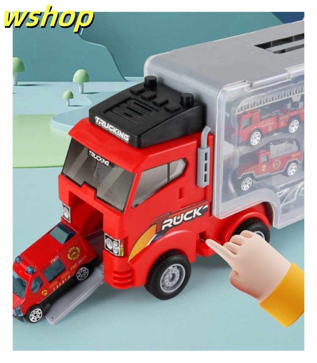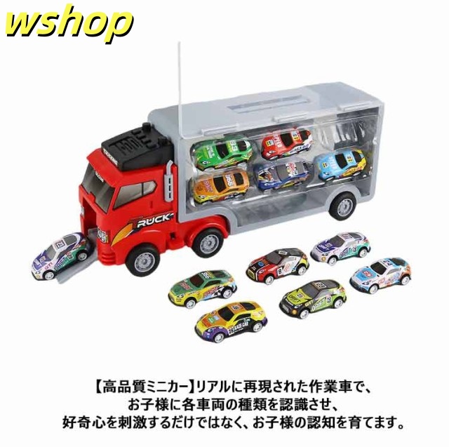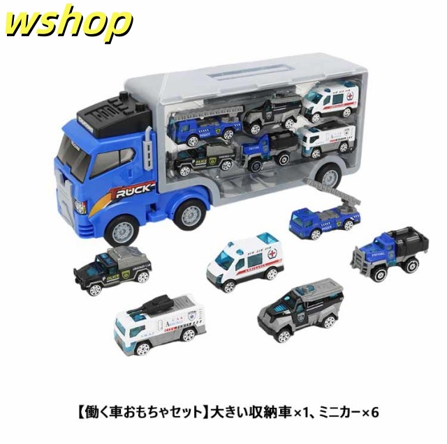 【wshop 】1台収納車 6台ミニカーセット 車おもちゃ 運搬車 働く車 工事カー 赤 はたらくくるま 合金 作業車両 火事車 警察車 ミリタリー車 男の子 室内遊び キッズ 小学生 幼稚園 乗り物 キャリアカー 大人気 プレゼント 誕生日 ギフト クリスマス