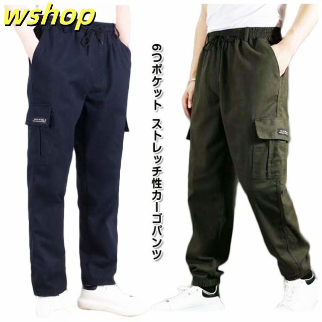 人気急上昇 レビュー高評価 春 カーキ 【wshop 秋 イージーパンツ アウトドア 春服 ワークパンツ 韓国 ネイビー メンズファッション ミリタリー 紺 ウエストゴム アメカジ ストレッチカーゴパンツ ボ カーゴパンツ 秋服 メンズ パンツ 】ゴルフ スリムテーパード 送料無料