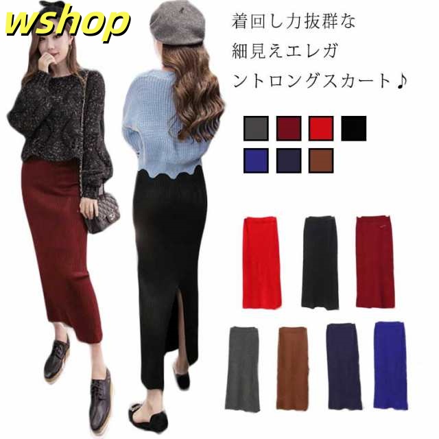 レビュー高評価商品 品質安心 【wshop ニットスカート 今だけ レディース セクシー 通勤 】スリット入り ロング丈 マキシカート スカート ランキング常連 ハイウエスト 秋冬 ウエストゴム タイトスカート 送料無料 無地 軽量仕様 ボ お買い得プライス