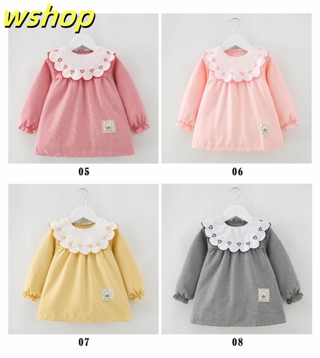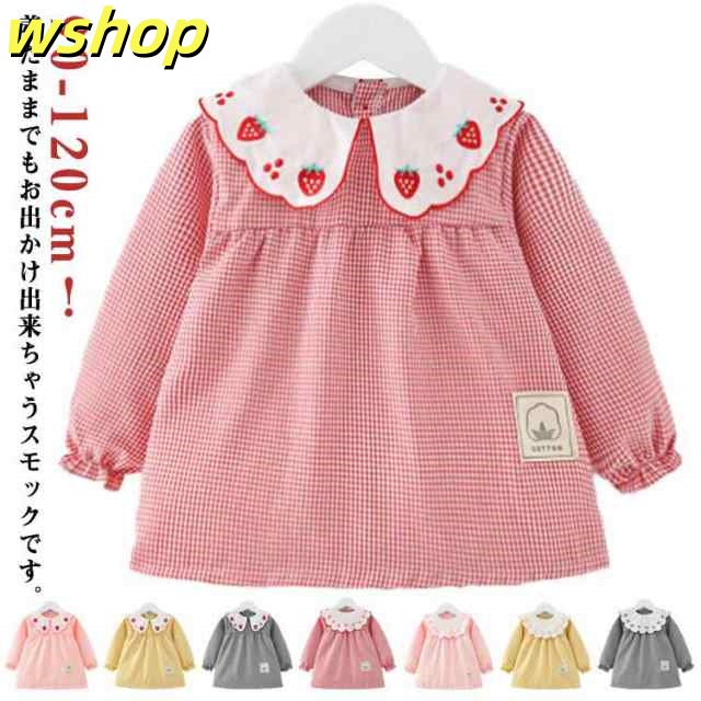【wshop 】長袖 スモック 防水 キッズ 女児 スモックブラウス 袖付きエプロン 女の子 ベビースモック 可愛い チェック柄 刺繍 汚れ防止 絵画 工作用 外遊び お食事 エプロン ワンピース 保育園 幼稚園 赤ちゃん 幼児 防水エプロン 子供服 春 秋冬 送料無料 90-120cm