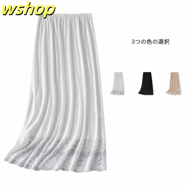 【wshop 】ペチスカート スカート ペチスカート 裾レースペチスカート アンダースカート ペチコート 裾レース マキシ丈 大人 ガーリー 体型カバー ゆったり 重ね着 インナー 透けない 春夏 大きいサイズ レース 裾レーススカート ロングスカート インナースカート インナー