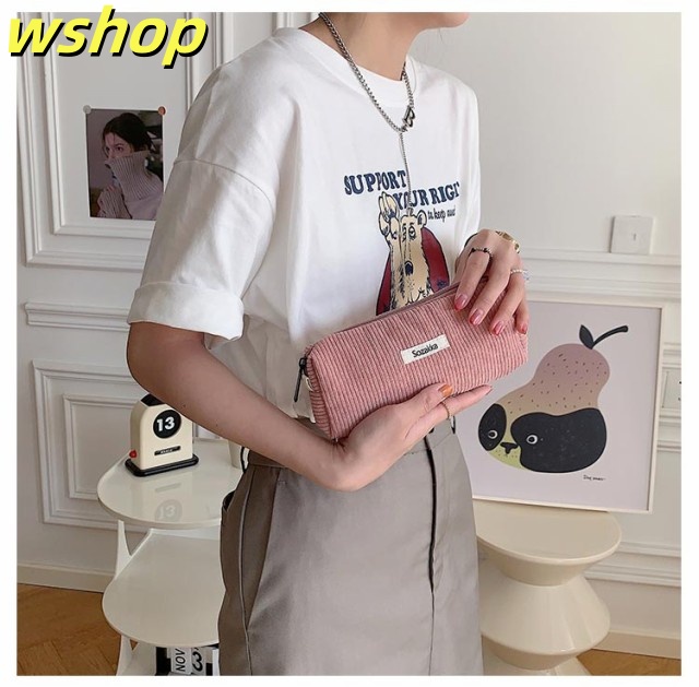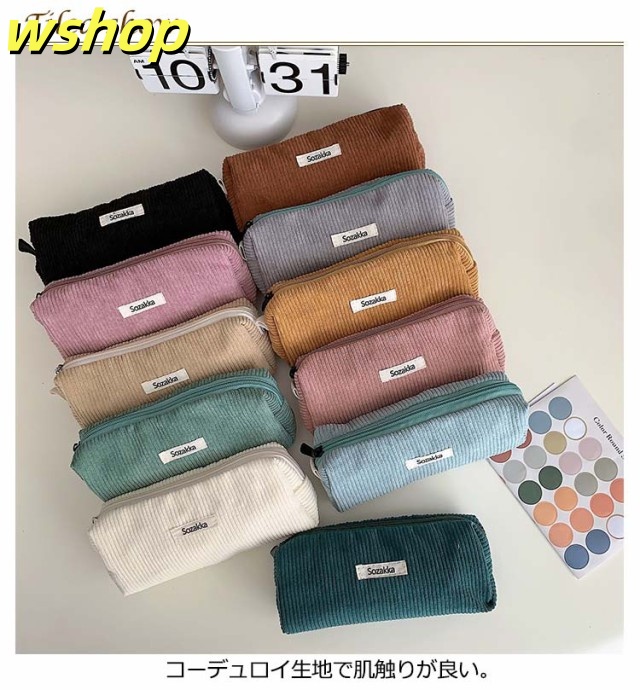 【wshop 】全11色!コーデュロイ シンプル 韓国 ペンポーチ かわいい ブラシケース 文具 推しカラー ふでばこ ペンケース 可愛い スリムポーチ ふで箱 筆箱 大容量 中学生 高校生女子 レディース 化粧ポーチ 男の子 女の子 子供 大学生 メンズ 誕生日 推し活 おしゃれ