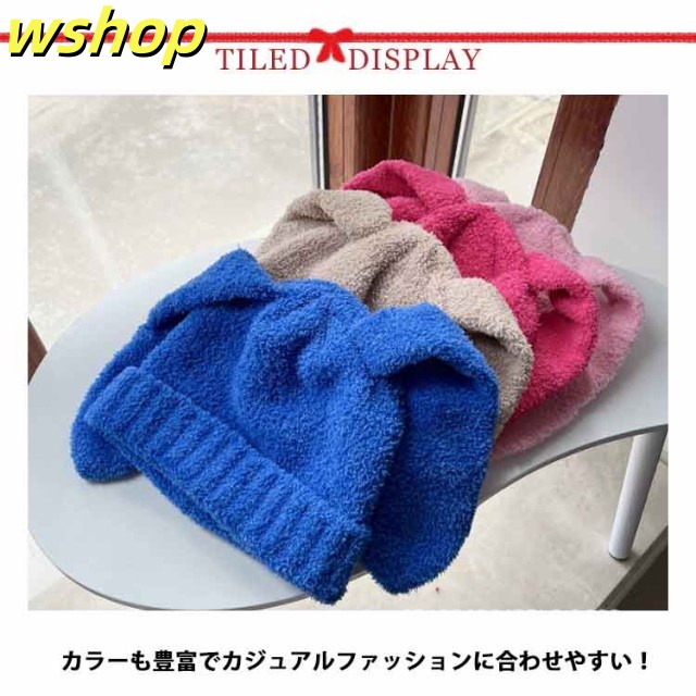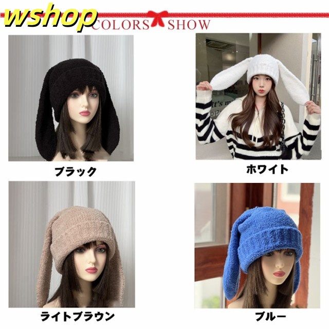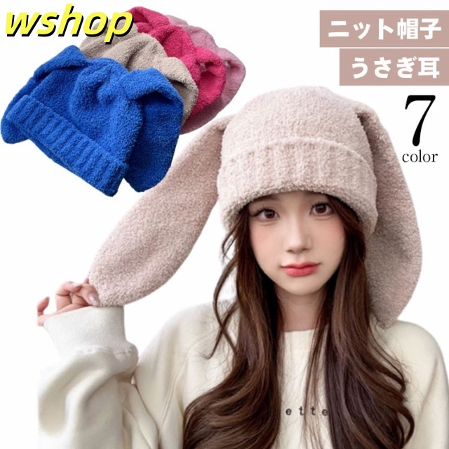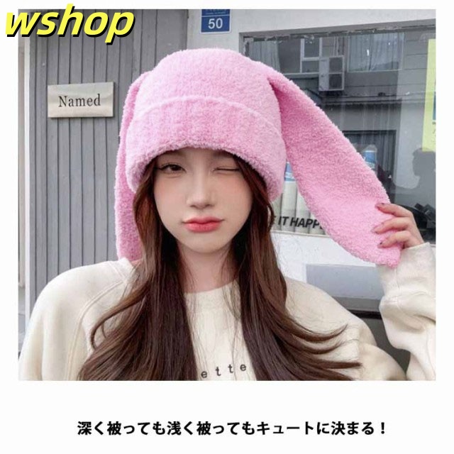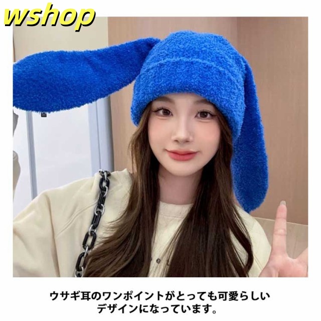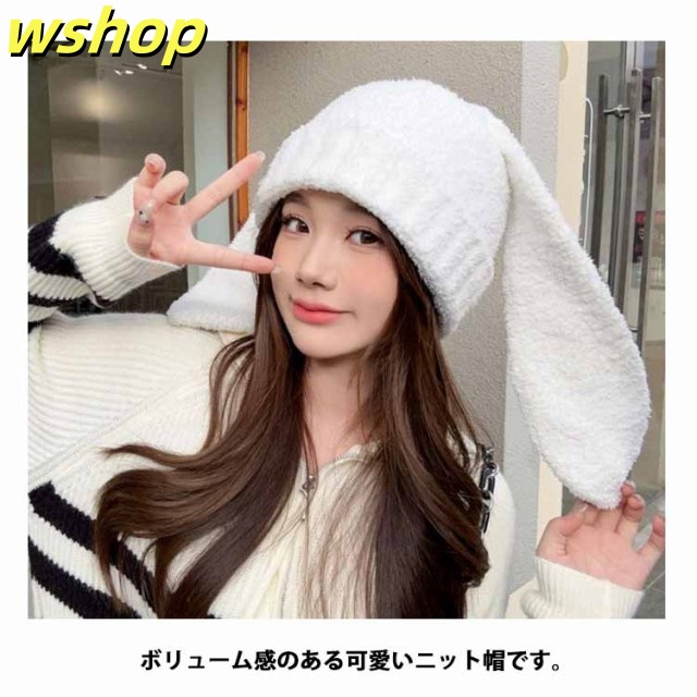 【wshop 】帽子 ニット帽子 レディース うさぎ うさ耳 冬 耳付き 兎耳 暖かい お出かけ ニット帽 ウサギ耳 ニットキャップ ウサ耳ニット帽 デイリー 可愛い おしゃれ シンプル ユニーク 撮影 ボア 韓国 かわいい 秋冬 キャップ あったか 防寒 小顔効果