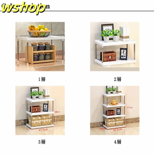 【wshop 】特別価格・1層-4層! 収納ラック ラック 収納棚 スリム 収納ボックス 収納ケース 4段 3段 2段 棚 収納 押入れ すき間収納 カラーボックス スリム収納 ステンレス オープンラック プラスチック フリーラック キッチン 棚り棚 リビング 家具 シンプル