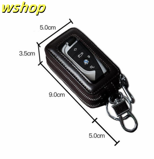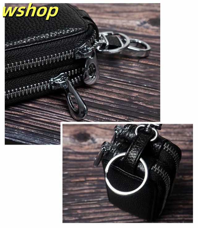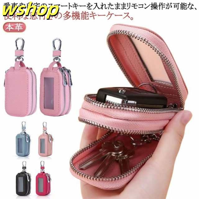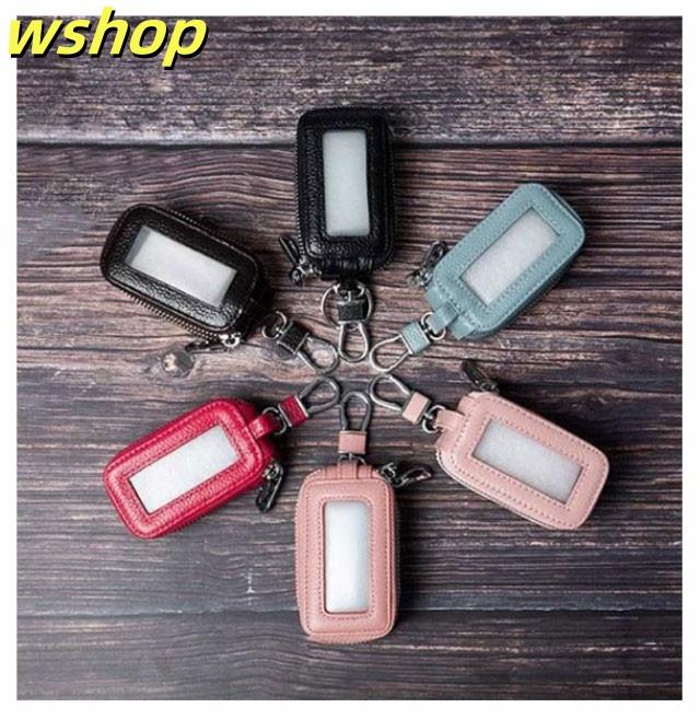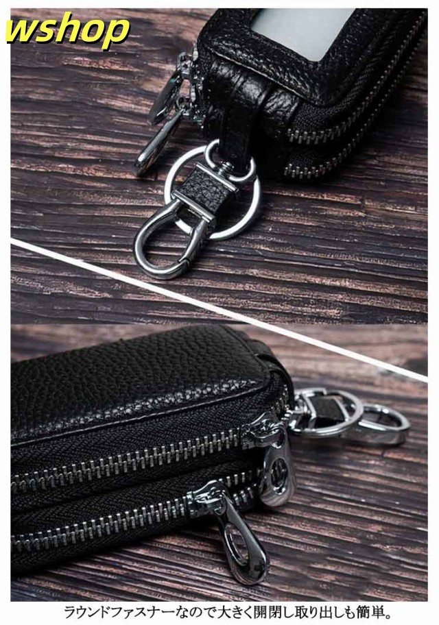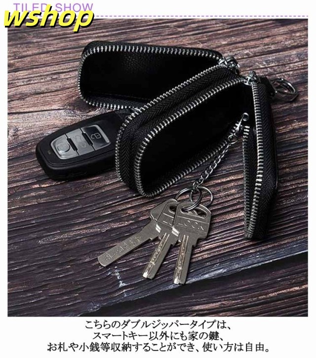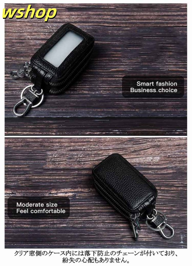 【wshop 】スマートキーケース クリア窓付き ダブルファスナータイプ スマートキーカバー 車の鍵 キーケース ダブルキーケース 本革 スマートキー キーケース 収納 ケース カバー 2つのキー 収納可能 おしゃれ レディース メンズ インナーチェーン付 ダブルポケット