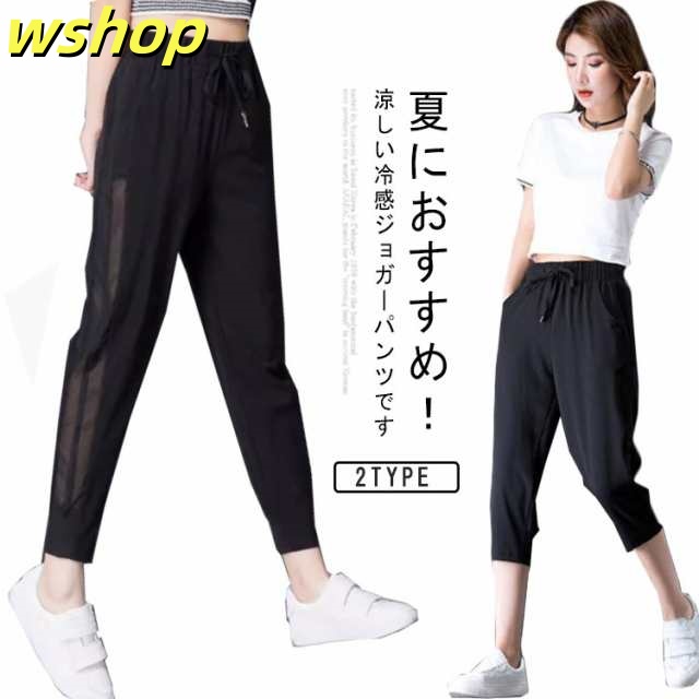 即納OK ランキング常連 【wshop フィットネス UVカット 夏用 吸汗速乾 接触冷感 冷感パンツ ストレッチ ひんやり ワイドパンツ 9分丈 7分丈 クロップドパンツ 】ジョガーパンツ イージーパンツ レディース ランニング 涼感 ボ スポーツ ハーフパンツ 涼しい 在庫わずか