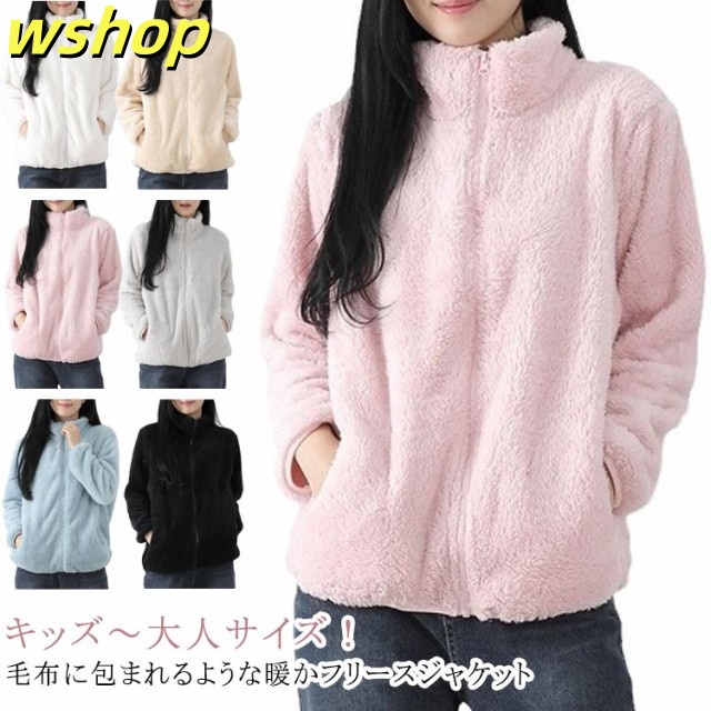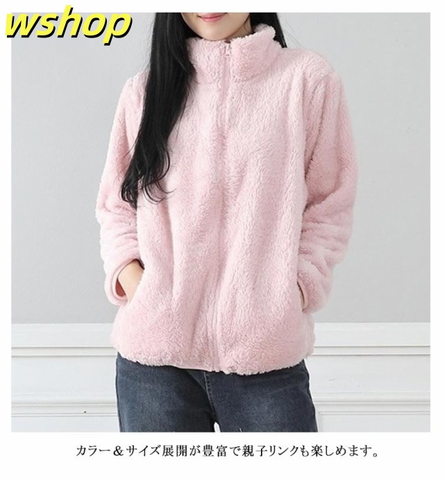 【wshop 】フリースジャケット ジップアップ レディース フリース アウター 保温 ブルゾン 無地 キッズ 秋冬 厚手 暖かい 部屋着 ライトアウター ふわふわ もこもこ スタンドネック 冬服 キャンプ 秋服 防寒 フリースジャケット 子供 大人 親子ペア おしゃれ