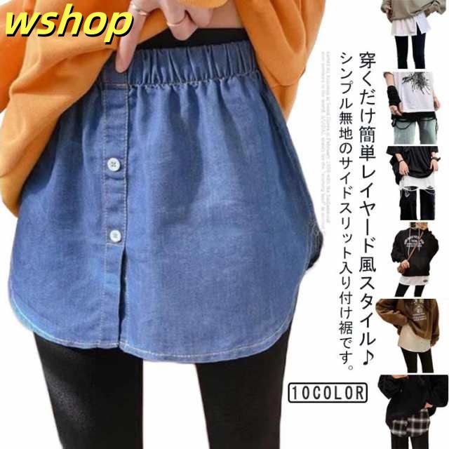 | 穿くだけ簡単レイヤード風スタイル♪ シンプル無地のサイドスリット入り付け裾です。 いつものコーデにプラスするだけでお洒落度アップ ウエストゴムなので、トップスに合わせた丈感に調整OK! 気になる体型カバーも出来ちゃうのが嬉しいですね | |