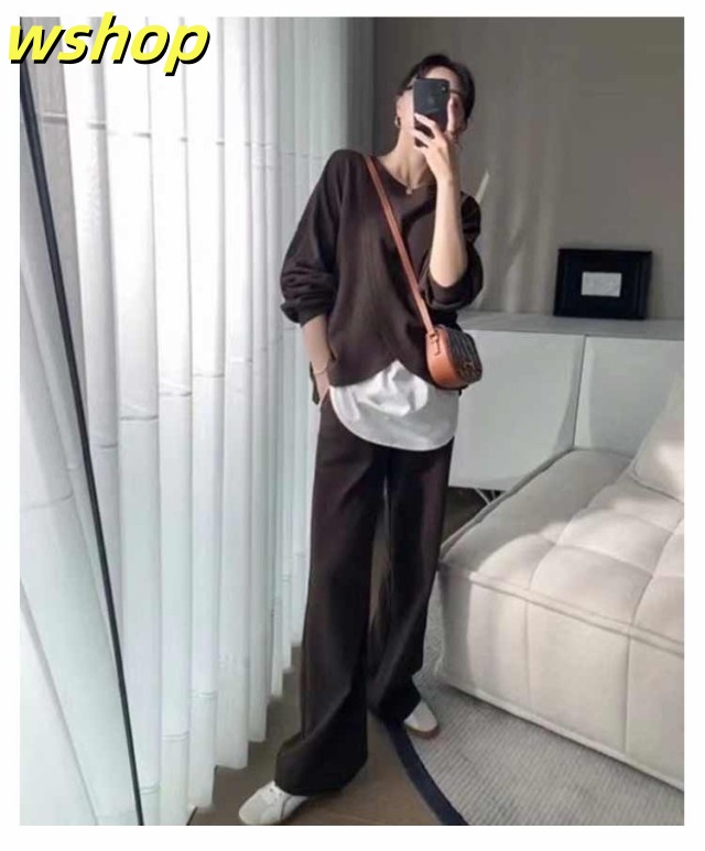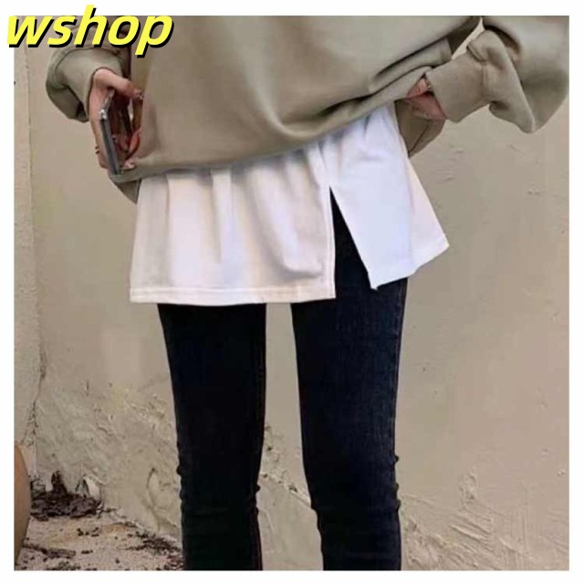 レディース つけ裾 レイヤードトップス 付け裾 スリットレイヤードTシャツ レイヤード風 Tシャツ 秋冬 スリット 体型カバー 裾 おしゃれ ショート丈 ウエストゴム フェイクレイヤード ゆったり 大きいサイズ 重ね着風 付け裾 おしゃれ お出かけ