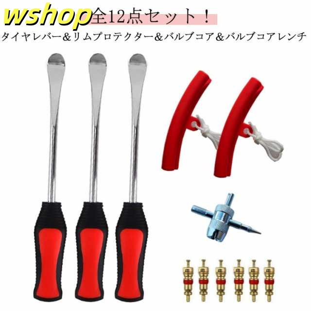 12点セット タイヤレバー ホイール 自動車 スクーター 便利 バルブコアレンチ セット 自動車 バルブコア バイク 修理 タイヤ メンテナンス オートバイ 工具 タイヤレバー リムプロテクター 原付 車 汎用 送料無料 収納ポーチ付き