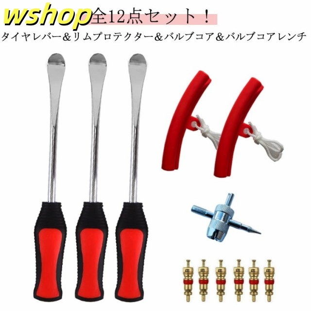 | サイズについての説明 | 12点セット:タイヤレバー3本、リムプロテクター2本、バルブコア6本、バルブコアレンチ1本 |