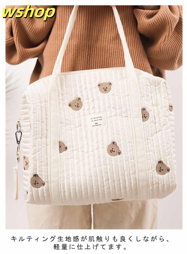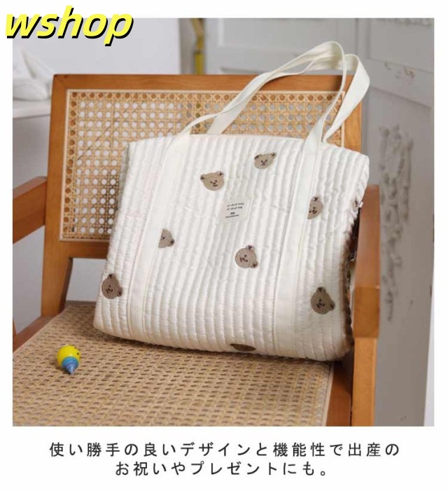 ファスナー付き トートバッグ マザーズバッグ 出産祝 刺繍 韓国 軽量 保育園 ショルダーバッグ ベビーカーバッグ お洒落 2way 大容量 キルティング 可愛い 肩掛け ママバッグ 軽い