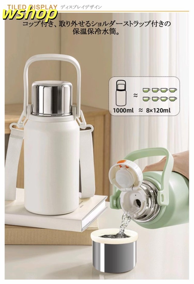 軽量仕様 レビュー高評価 1リットル 保冷 おしゃれ 軽量 水筒 1000ml 大人 ショルダーストラップ付 付き マグボトル ストラップ 800ml ステンレス キッズ 1.5L 真空ボトル ショルダー付き 魔法瓶 真空断熱 1500ml ボトル コップ付き 大容量 茶こし付き 1L コップ付 今だけ限定