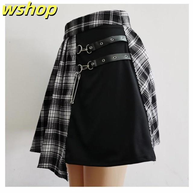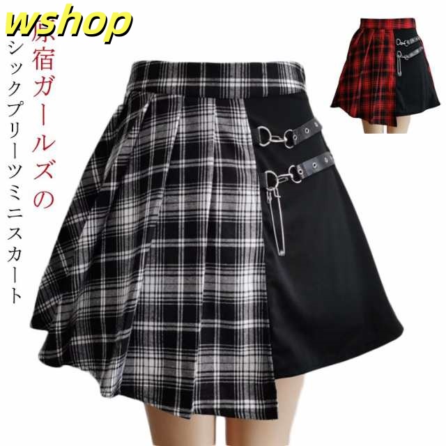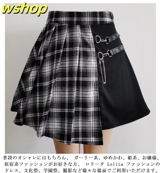 ミニ スプライス 個性的 原宿 フレア 膝上 パンク ベルト ハイウエスト レディース ゴスロリ チェック柄 ストリート系 ゴシックスカート Aライン イベント 衣装 コスチューム 地雷系 ストリート系 JK制服 プリーツスカート