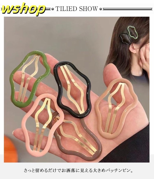 | 【15個セット!】【大きめ】【5color】 さっと留めるだけでお洒落に見える大きめパッチンピン。 落ち着いたカラー&ニュアンスフレームで大人っぽい雰囲気に。 遊び心をプラスしたニュアンス変形フォルムがシンプルだけどモダンな雰囲気に。 存在感抜群の大きめサイズで、ヘアスタイルのアクセントにもぴったりです◎ さっと留めたり、お団子やポニーアレンジに添えたりと色々なヘアに活躍しそう◎ デイリー服にも馴染みやすく、コーデに迷わずおしゃれを楽しんでいただけます。 | |