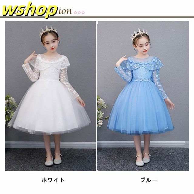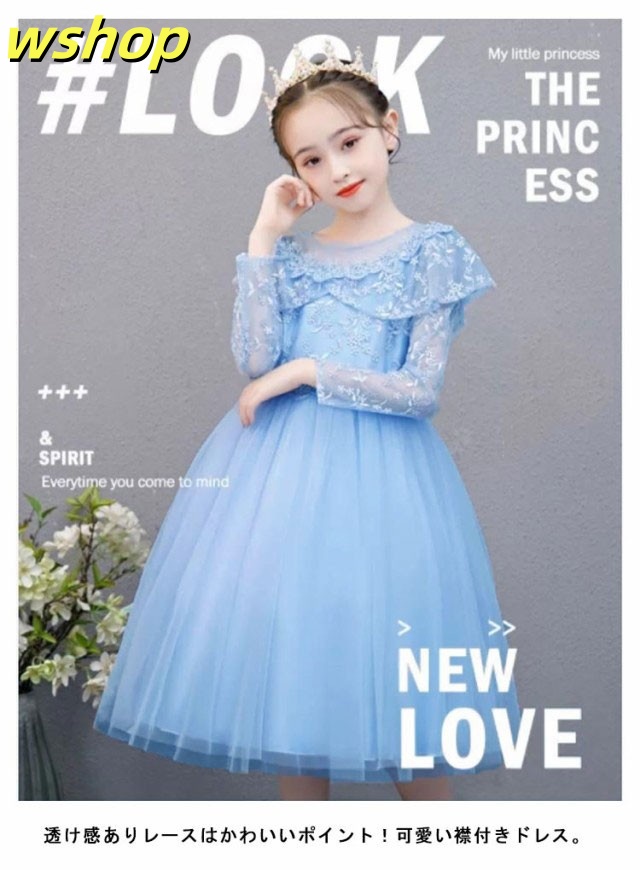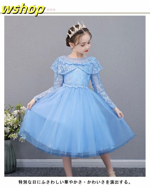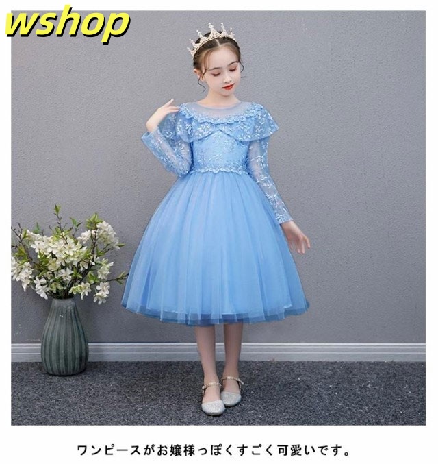 子供ドレス 長袖 ドレス 子供 ピアノ発表会 子どもドレス 膝丈 レースドレス 発表会ドレス フォーマル キッズ 女の子 ジュニア 子供服 ワンピース 七五三 結婚式 フラワー 演奏会 襟付き 110 120 130 140 150 160