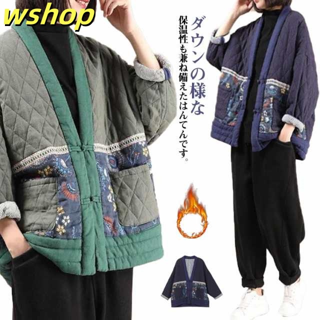 半纏 はんてん おしゃれ レディース 中綿入り 暖かい お洒落 中綿アウター 暖かい 軽量 リビング キッチン 前開き ルームウェア 可愛い 半纏 羽織り 防寒着 部屋着 ショート丈 保温 防寒 節電 省エネ 家事 勉強 中華風