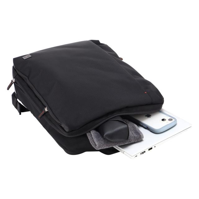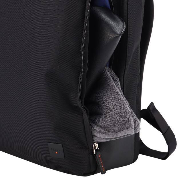 大きな15.6インチノートPCに対応したイズイットのビジネスリュック。軽量・撥水・機能性を併せ持ったこのリュックは大切なパソコンを安全に持ち運べるのは勿論、必要なガジェットも収納できる便利なポケットが盛沢山。メインルーム内はB4サイズに対応。背側にはセットアップベルト付きでスーツケースに取り付けが可能です。