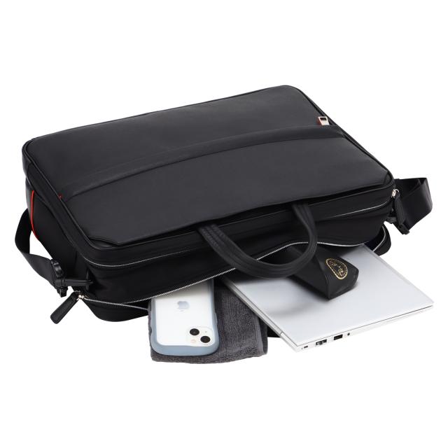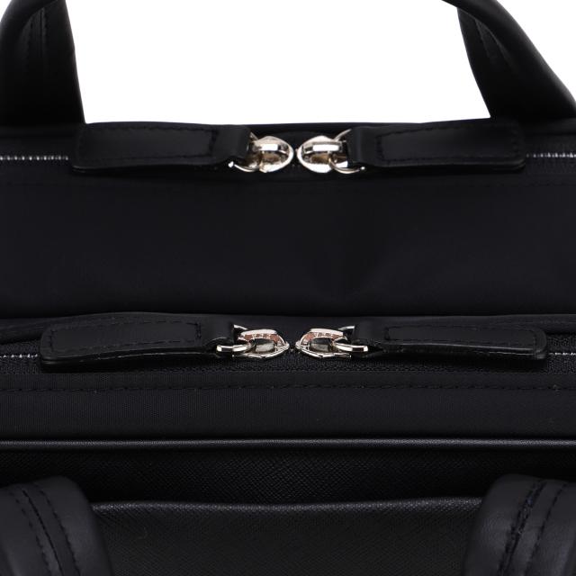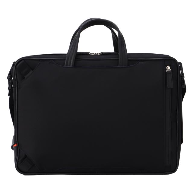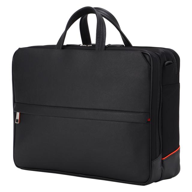 前面にはサフィアーノ型合成皮革を、ハンドルには手に馴染む牛革を、そしてマチと背面にはナイロンを使用した異素材コンビでスッキリとしたデザインのB4サイズの3WAYビジネスバッグ。2層タイプで1泊2日の出張にも対応した大容量なビジネスバッグです。シーンに合わせて、リュックやショルダーとしてもお使いいただけます。豊富な収納ポケットで、ビジネスに必要なあらゆる荷物の持ち運びが可能です。B4ファイルがすっぽり収まるメインコンパートメントは前室と後室に分かれた2層タイプ。1泊2日の出張にも対応した大容量なビジネスバッグです。