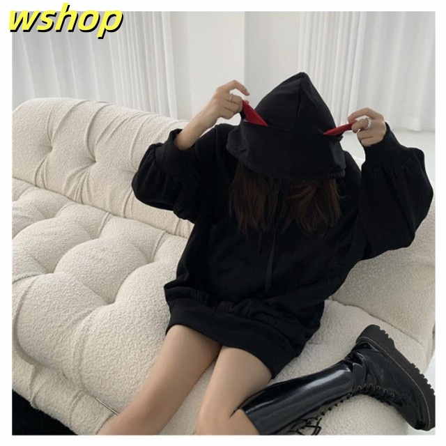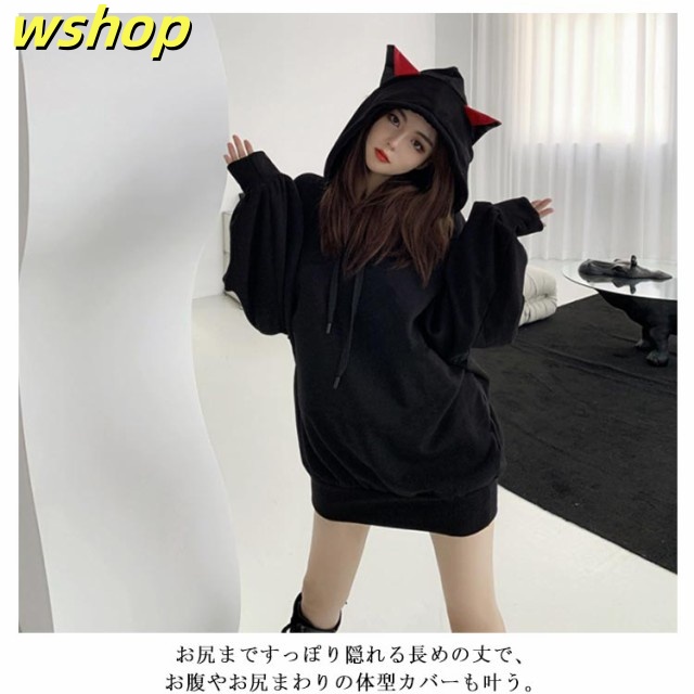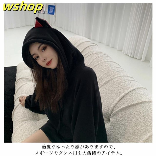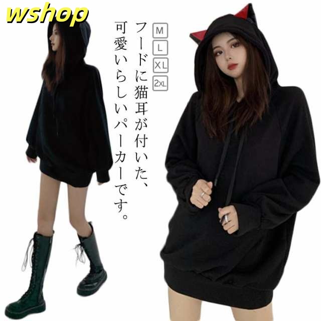 新登場 SNS話題 可愛い 】ゆったり ストリート系 原宿風 オーバーサイズ 韓国風 プルオーバー ビッグシルエット 猫耳 トップス スウェット トレーナー 長袖 春秋 【wshop レディース フード付き パーカー カジュアル 在庫わずか