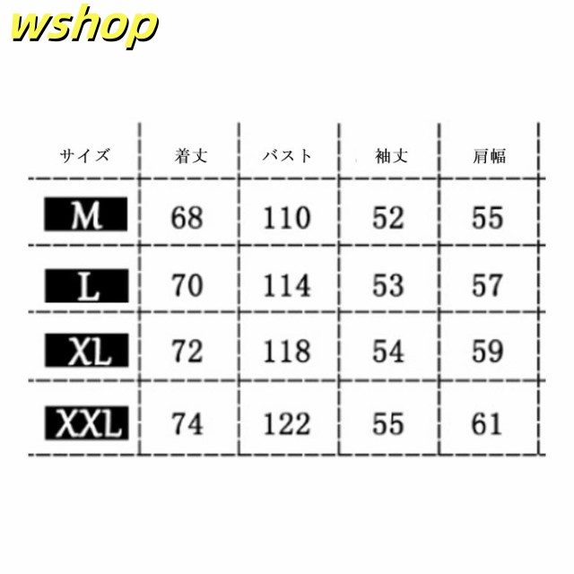 | サイズについての説明 | サイズ 着丈 バスト 袖丈 肩幅※平置き採寸となりますので、1-3cmほど誤差がある場合がございます。 |