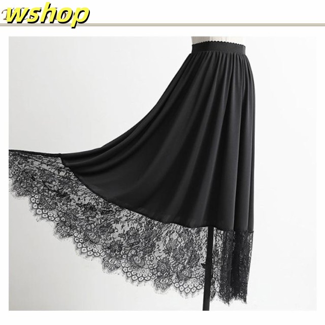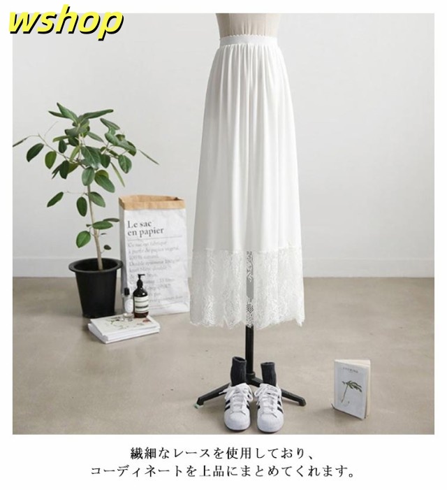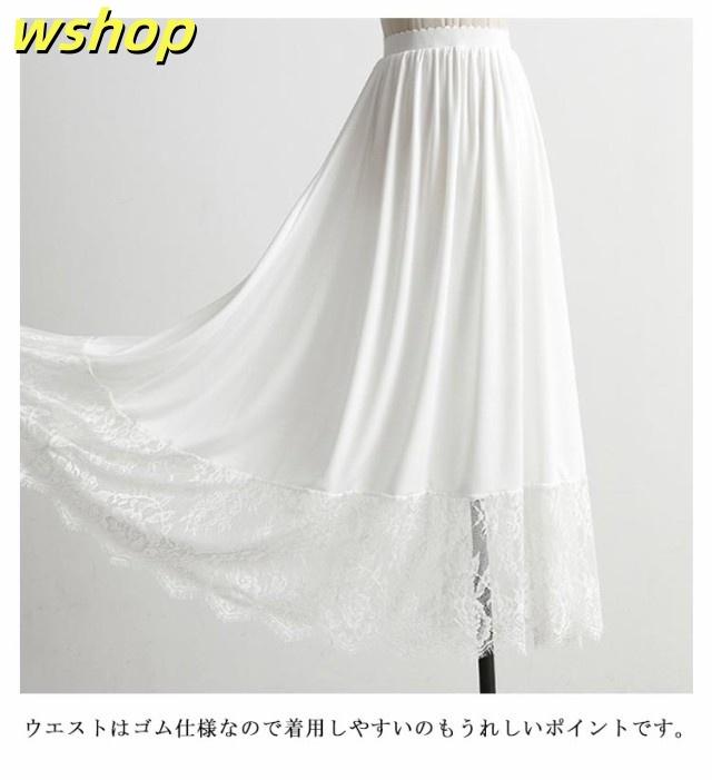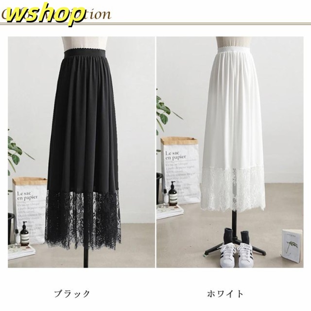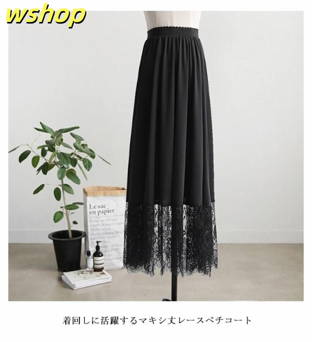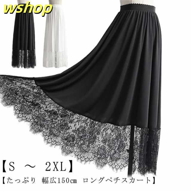 【送料無料】ペチスカート ロングスカート インナー スカート 裾レース 黒 白 たっぷり 幅広150cm レース マキシ丈 裾 見せ ペチコート インナー 大人 ガーリー 白 ホワイト 黒 ブラック 体型カバー ゆったり 重ね着 フリーサイズ 20代 30代 40代 50代 春夏 大きいサイズ