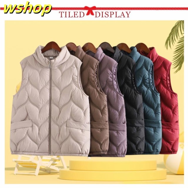 新登場 売上急増中 撥水 ダウンベスト 【wshop ウルトラライト アウター インナーダウンベスト シンプル 大人 インナーベスト 冬 暖かい フェイクダウン 薄い 秋 トップス 無地 婦人 大きいサイズ ライトダウン レディース 軽量 立ち襟 】中綿ベスト おしゃれ 送料無料