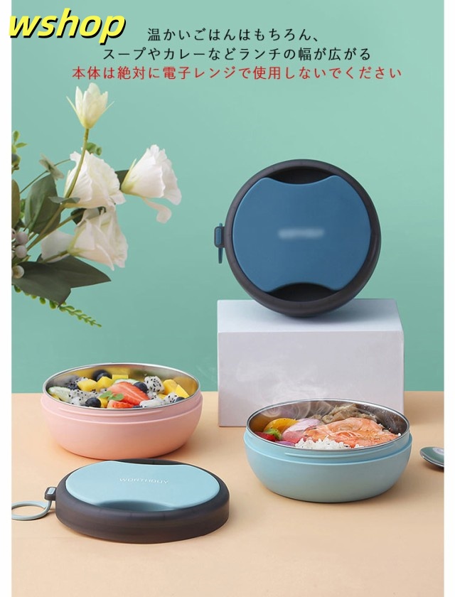 | 折り畳み可能スプーン&お箸付き!通勤、通学にぴったり保温弁当箱。 真空二重構造なので保温効果が大幅にUP! 温かいごはんはもちろん、スープやカレーなどランチの幅が広がる。 本体は絶対に電子レンジで使用しないでください。 | |