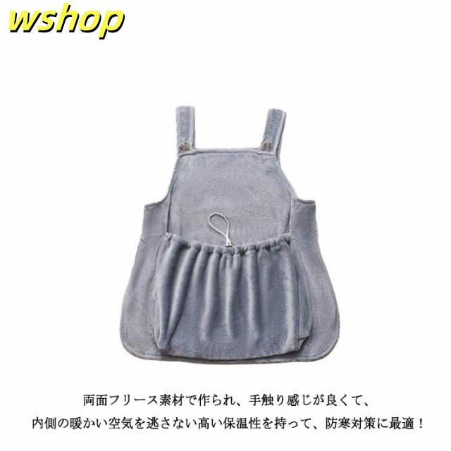 | ペットと幸せなひと時を過ごせるふかふかポケットエプロンです。 お膝に乗るのが大好きなワンちゃん猫ちゃんや抱っこが大好きな子に嬉しい! 抱っこ用エプロンなら毛が付くことが心配しなくて楽にペットを抱くことができます。 大きな袋状のポケットだから、抱っこしたまま移動も可能◎ 両面フリース素材で作られ、手触り感じが良くて、内側の暖かい空気を逃さない高い保温性を持って、防寒対策に最適! ポケットに調整できる紐が付いて、ペットの飛び出し防止できます。 後ろがボタンが付いており、着脱も楽になります。 エプロン式なので、着脱が簡単です。手洗いあるいは洗濯機で簡単に洗濯できます。 | |