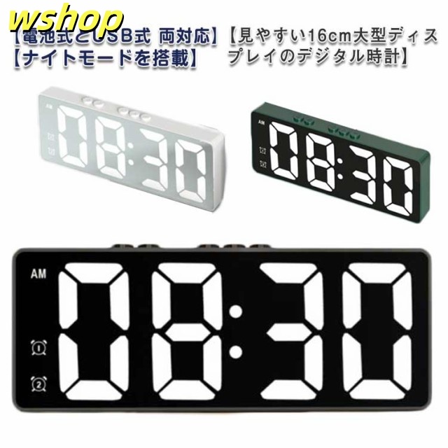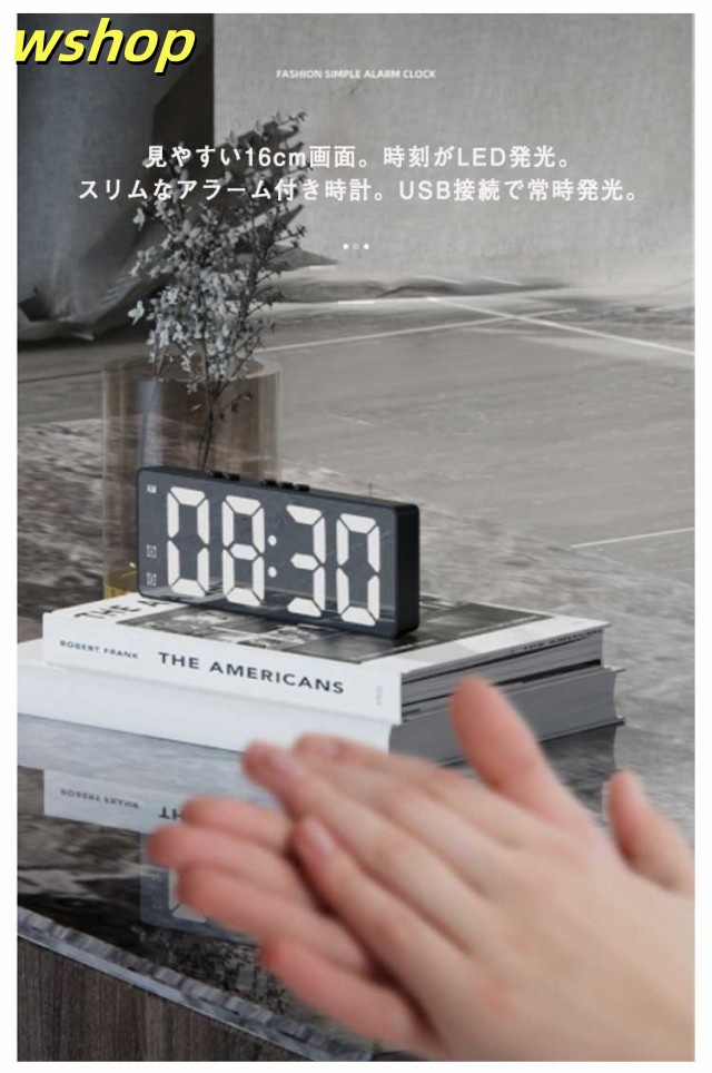 売れ筋アイテム 毎日使える便利品 電池式 時計 デジタルクロック 光る 【wshop シンプル ライト 目覚まし 黒 デジタル時計 おしゃれ 置き時計 】LED アラーム付き レビュー高評価 日付 温度 在庫わずか インテリア 薄型 USB 卓上 置時計 デジタル 新登場 お買い得プライス