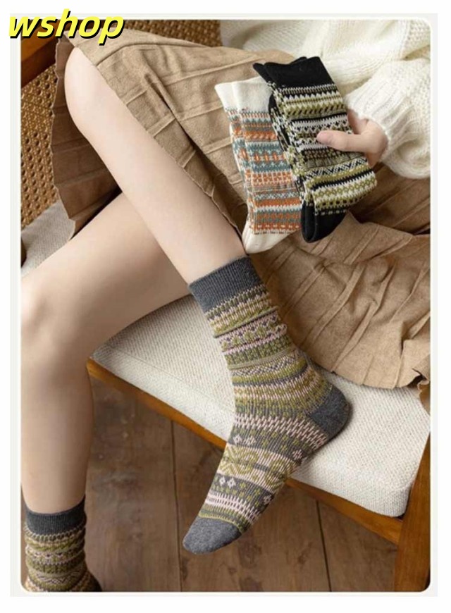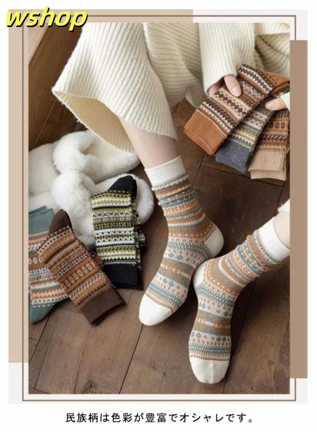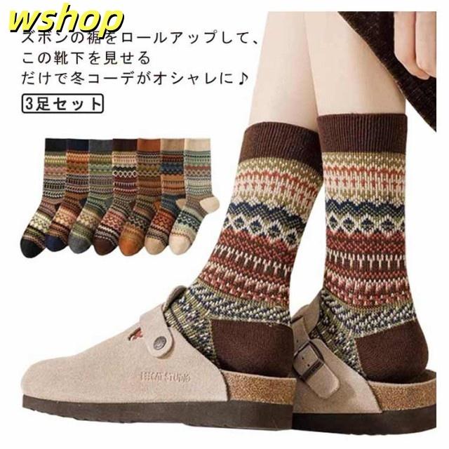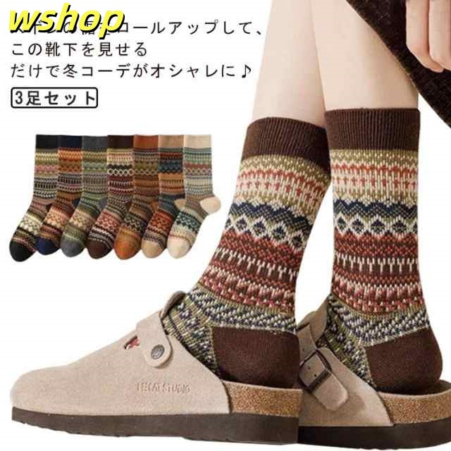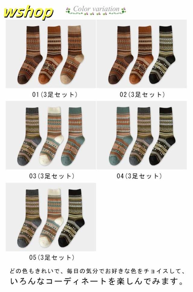 3足セット 中厚手 暖かい 靴下 防寒 春秋冬 3足セット 民族柄 レディース 春 ルームソックス アウトドア 靴下 可愛い くつした 婦人 室内 保温くつ下 カジュアル ビジネス おしゃれ
