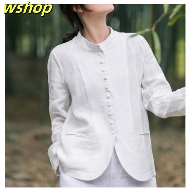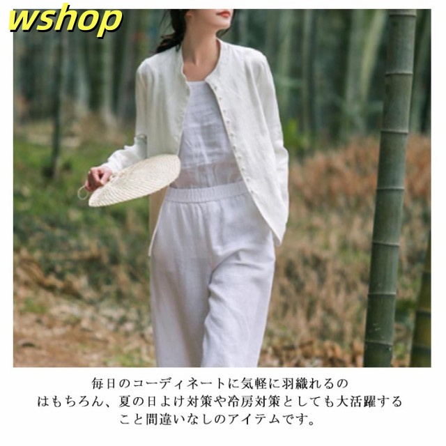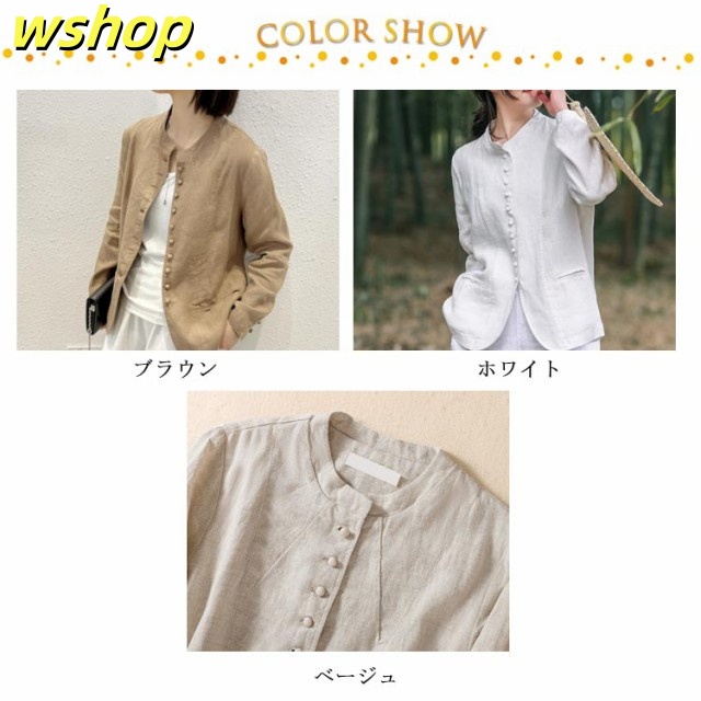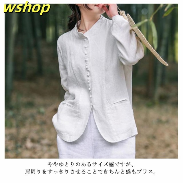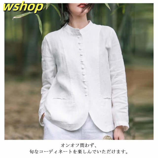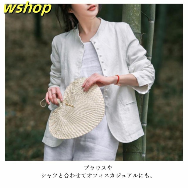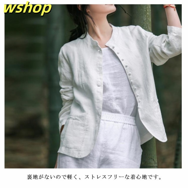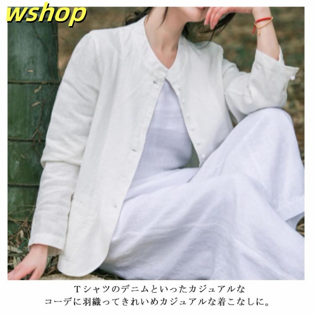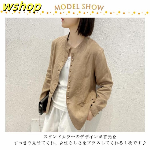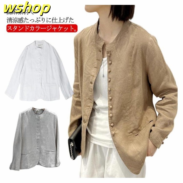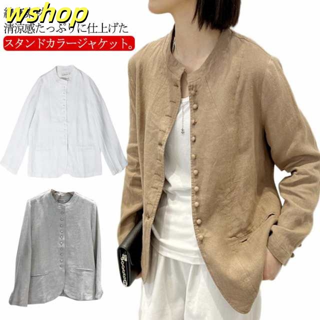 リネンジャケット レディース スタンドカラー ノーカラー ジャケット 綿麻 コットンリネン アウター 薄手 サマージャケット 涼しい 夏 羽織り 長袖 コート 夏ジャケット 紫外線対策 冷房対策 ナチュラル 大人 カジュアル きれいめ おしゃれ 春 秋 夏 通勤 OL 送料無料