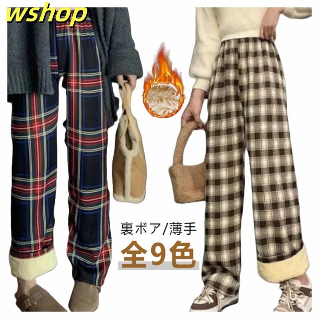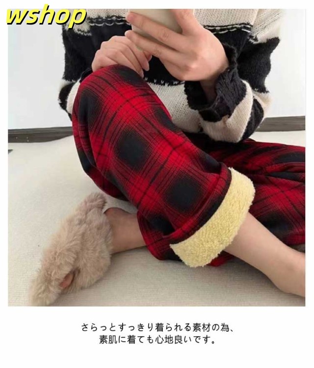 人気急上昇 ランキング常連 ウエストゴム 【wshop あったか チェック柄 カジュアルパンツ パンツ レディース 部屋着 ロングパンツ ゆったり シンプル 秋冬 】裏ボアパンツ ルームパンツ 長ズボン おうち時間 大きいサイズ リラックス おしゃれ 在庫わずか