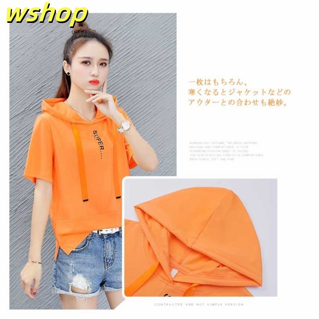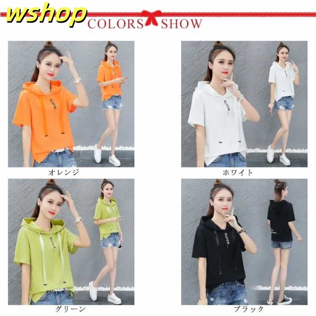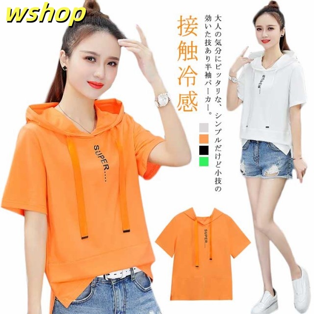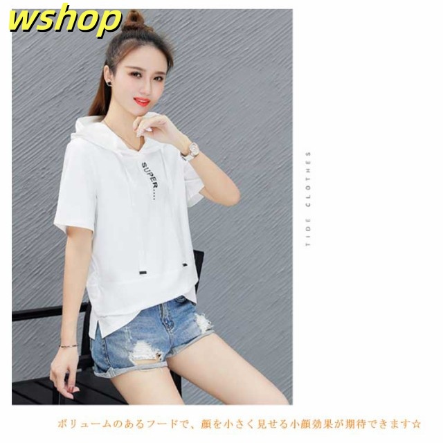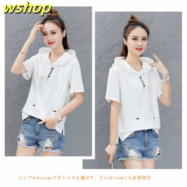 半袖パーカー サマーパーカー 送料無料 レディース 夏 パーカー プルオーバー 半袖 トップス tシャツ 春夏 夏パーカー 夏用パーカー フード付き カジュアル おしゃれ