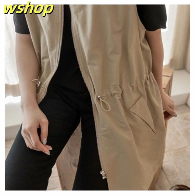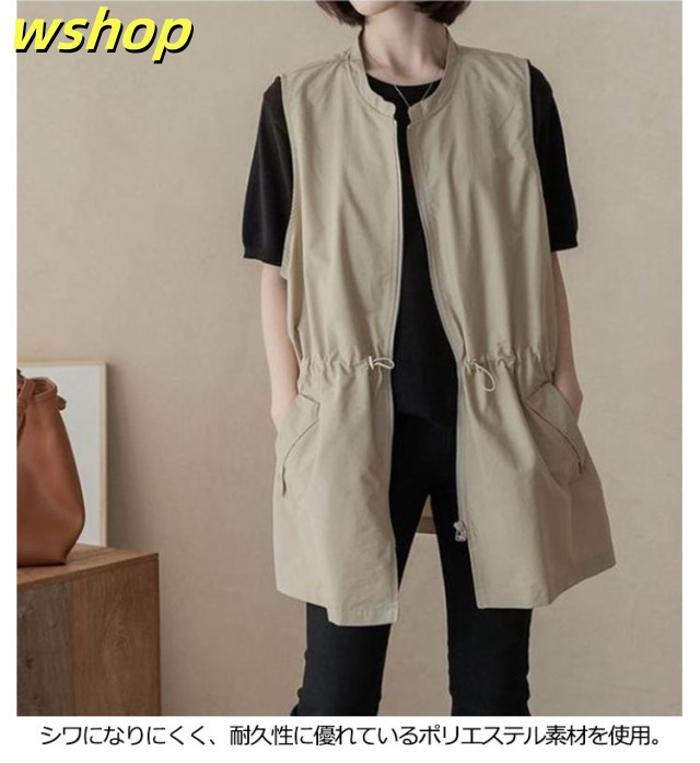 即納OK SNS話題 ジャケット クルーネック 30代 夏 ミリタリーベスト 50代 ノースリーブ 重ね着 レイヤード ポケット付き 】ベスト 薄手 春 秋 40代 【送料無料】 サマージャケット レディース ジップアップ カジュアル 【wshop 無地 ロング ナイロンベスト 韓国風 今だけ限定