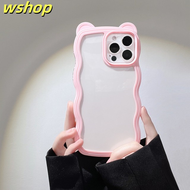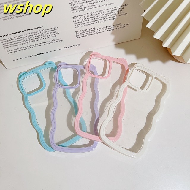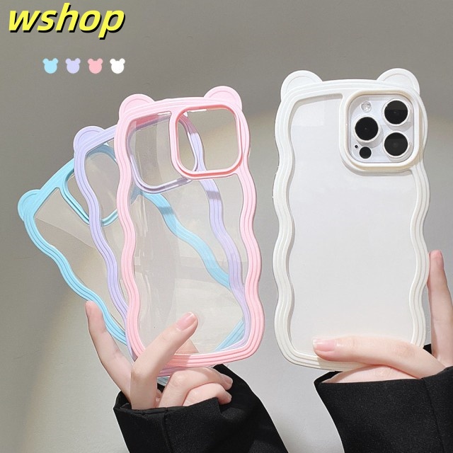 家中時間充実化 毎日使える便利品 パステルカラー おしゃれ クリア 】スマホケース 新登場 【wshop シェルカバー うねうね ウェーブ 在庫わずか アイフォンケース 透明 耳付き SNS話題 かわいい スマホカバー 即納対応中
