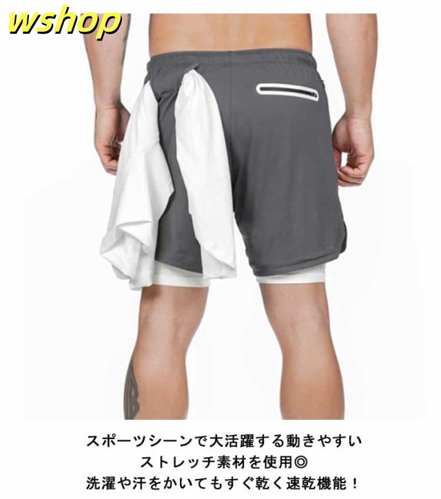 軽量仕様 レビュー高評価 ランニング 短パン ジャージ ランニングパンツ トレーニングウェア ハーフパンツ 】メンズ 【wshop アンダーウェア 吸汗速乾 ランニングウェア インナー付き ストレッチ スポーツウェア ジム インナータイツ付き ショートパンツ 通気 今だけ限定