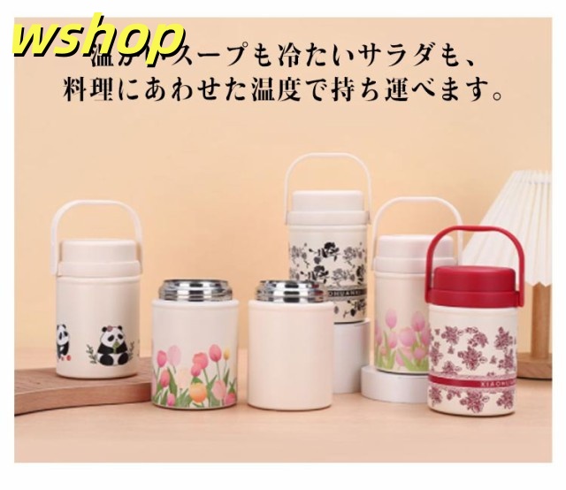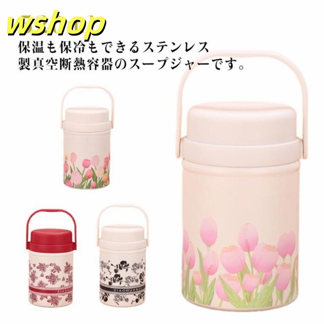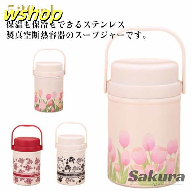 話題商品 レビュー高評価 保冷 保温調理 スープジャー スプーン付き 真空断熱 チューリップ 】ステンレスボトル ランチポット 大容量 保温弁当箱 花柄 520ml 弁当 フードポット 【wshop 無地 フードコンテナ ハンドル付き ランチジャー 保温 スープポット 在庫わずか