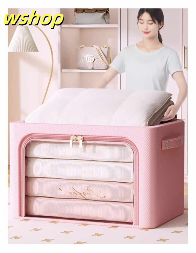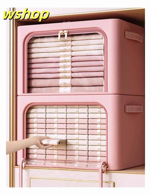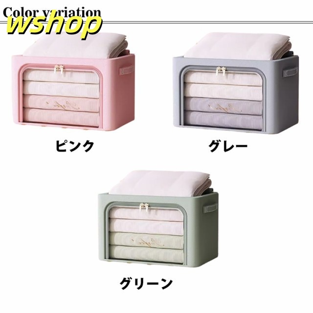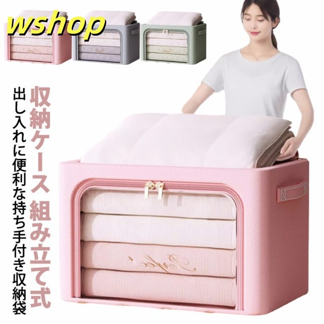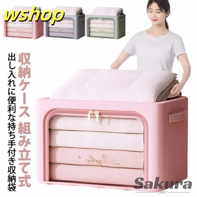 【wshop 】収納ケース 組み立て式 収納ボックス 衣装ケース 衣類収納ボックス 衣類収納袋 衣類 収納袋 透明 窓付き ケース 取っ手付き シングル ダブル クローゼット 押入れ 棚上 整理 整頓 コンパクト ダブルファスナー 冬物 夏服 冬服 衣替え トレーナー