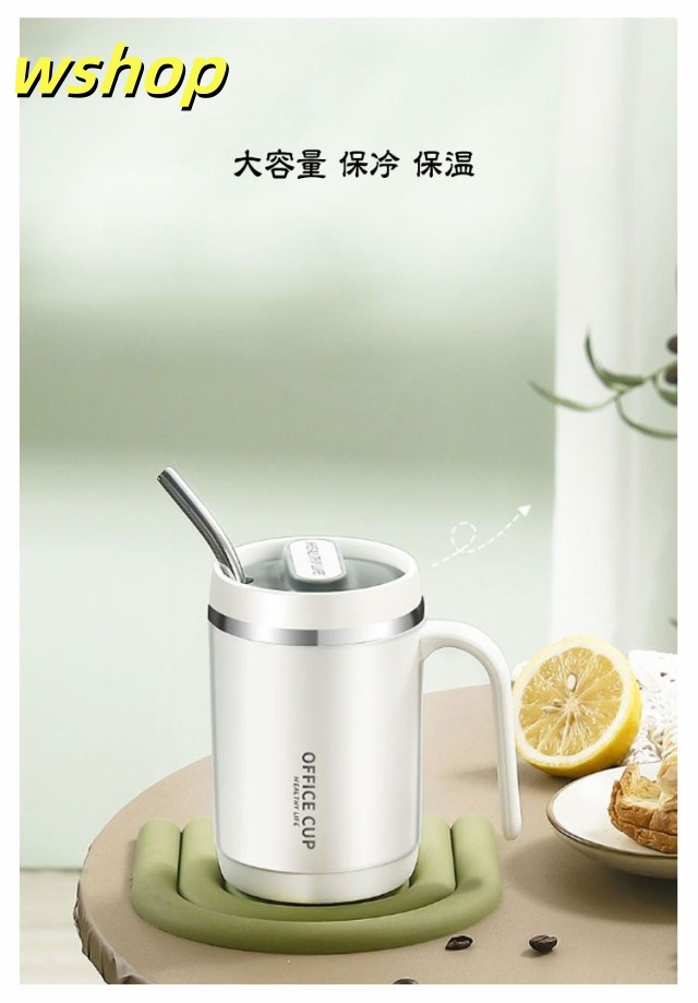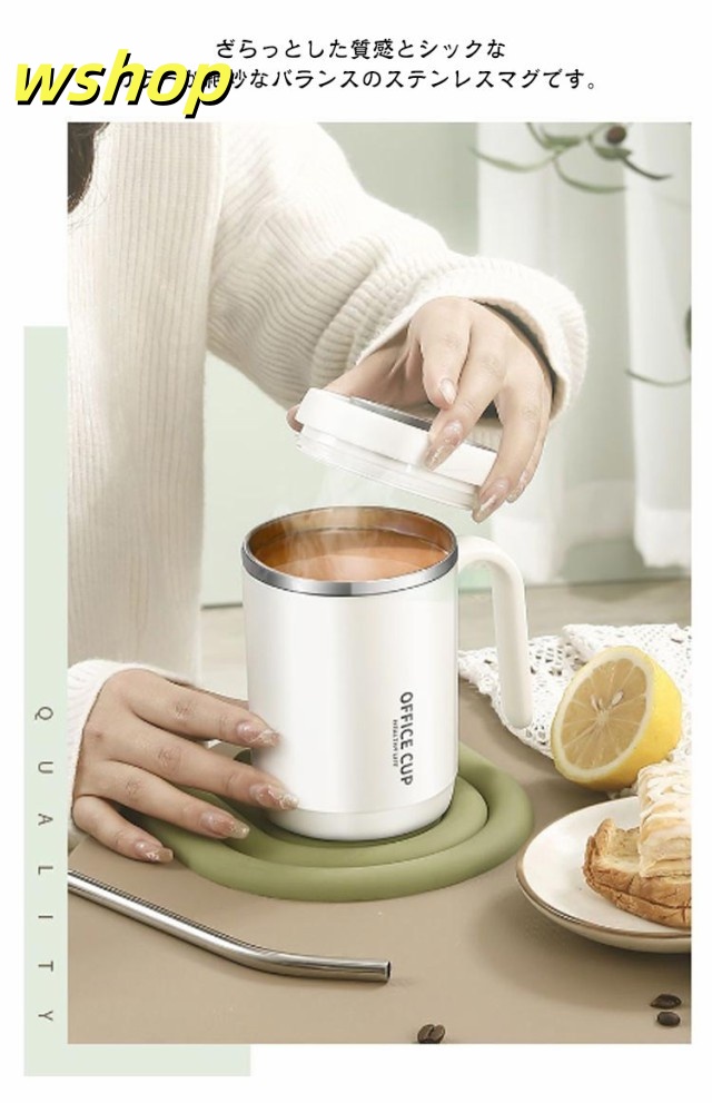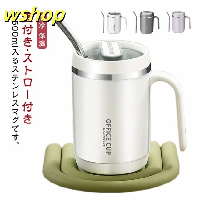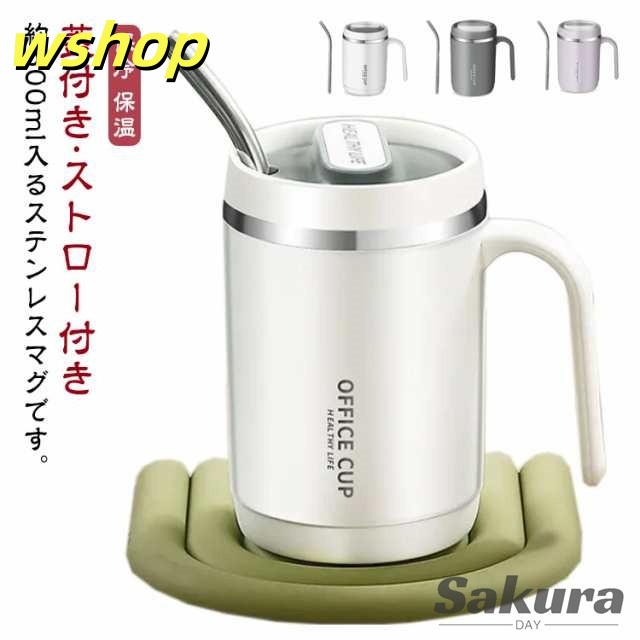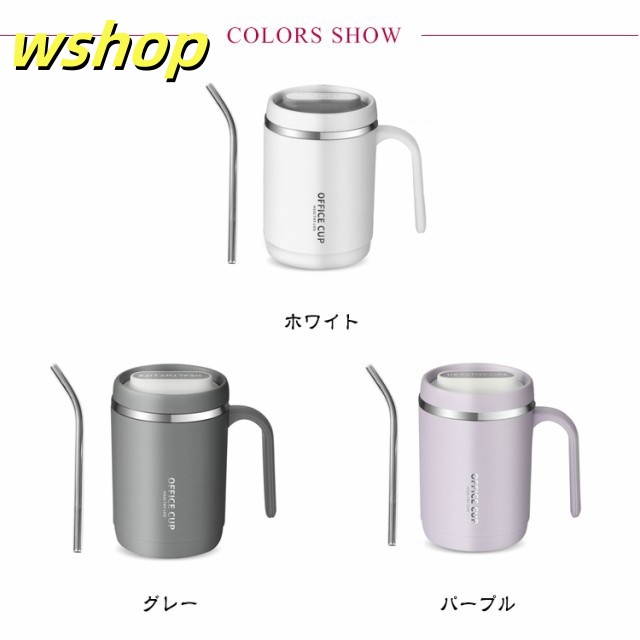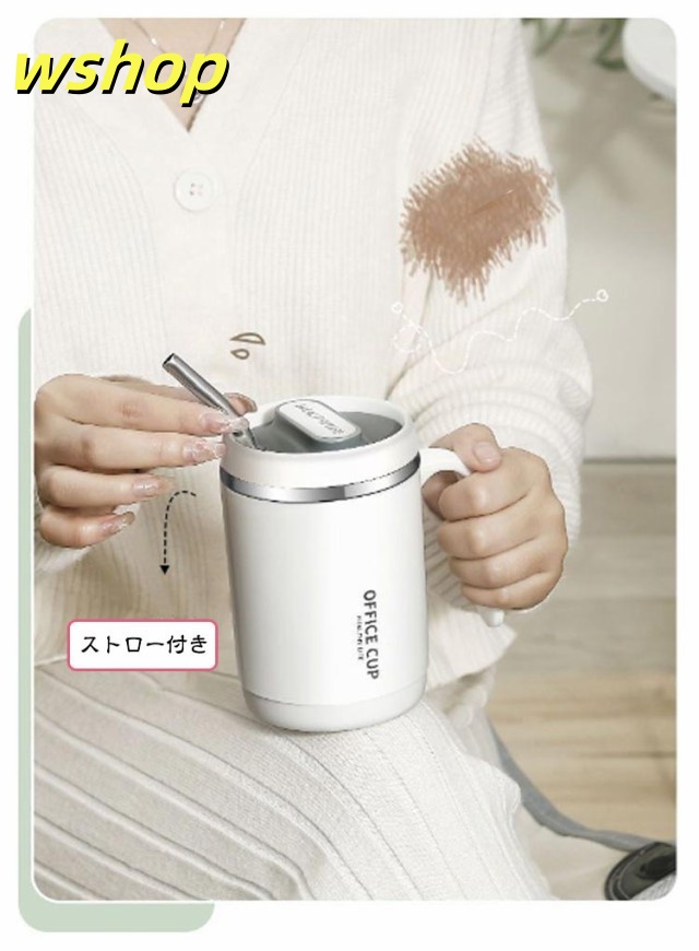 【wshop 】マグカップ ステンレス コーヒーマグ ストロー付き 蓋つき お茶 持ち手 取っ手 タンブラー 保冷 保温 ステンレスマグ 二重構造 ステンレスマグ 真空断熱 持ち運び 大容量 コーヒー こぼれにくい 紅茶 キャンプ オフィス アウトドア おしゃれ かわいい