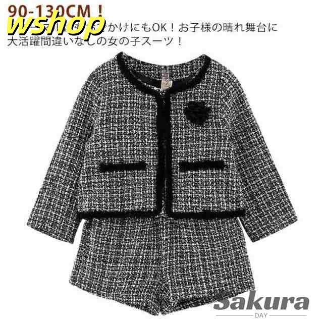 2点セット 入園式 卒業式 パンツセット ツイード 卒園式 子供スーツ 半ズボン 発表会 フォーマルスーツ 入学式 女の子 120 結婚式 ジャケット 七五三 短パンスーツ 上下セット フォーマル 子供服 送料無料 90 100 110 セットアップ