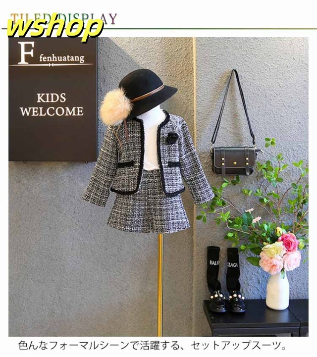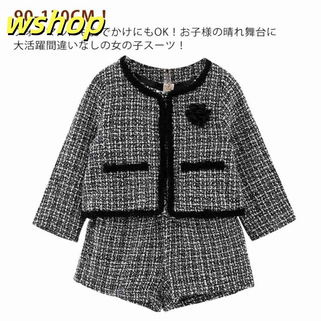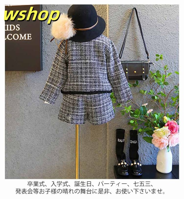 【wshop 】2点セット 入園式 卒業式 パンツセット ツイード 卒園式 子供スーツ 半ズボン 発表会 フォーマルスーツ 入学式 女の子 120 結婚式 ジャケット 七五三 短パンスーツ 上下セット フォーマル 子供服 送料無料 90 100 110 セットアップ
