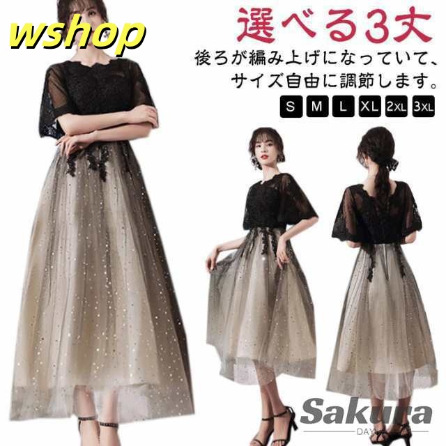 | 【選べる3丈】【S?XXXL】 後ろが編み上げになっていて、サイズ自由に調節します。 スパンコールがキラキラと輝く、気品とゴージャス感に魅了させられます。 シースルーレース地に優雅な花柄レースを施されて、華やかさをより、一層引き立て、上品な印象と共に優美なイメージあります。 また、さらっとした生地なので着心地も抜群!長時間の着用でもストレスフリーです♪ 袖付きなのでボレロなしでも着れるのも嬉しいポイント◎ 結婚式・謝恩会・同窓会等のパーティに一着は持っておきたいドレスです。 | |