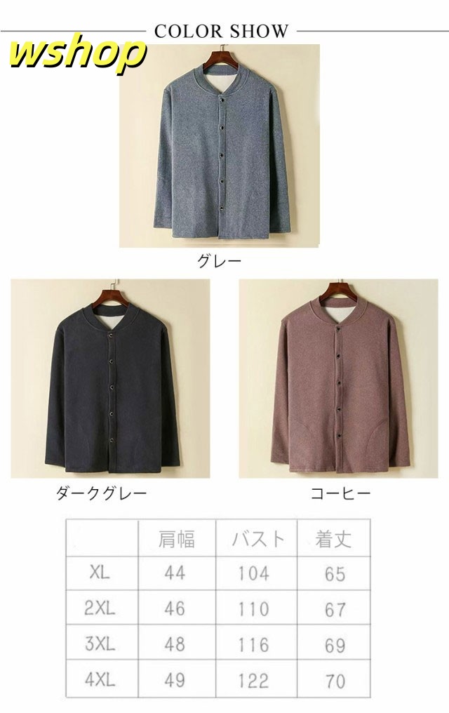 入院用 メンズ 手術 カーディガン 長袖 ブルゾン 立ち襟 裏起毛 ルームウェア 介護用 高齢者 部屋着 前開き 男性用 大きいサイズ ポケット付き 秋冬 羽織り 防寒 保温 カーディガン 暖かい