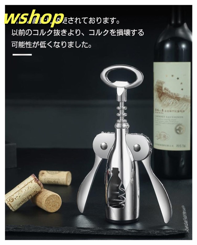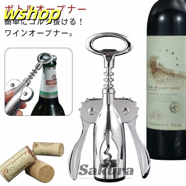 人気急上昇 レビュー高評価 プレゼント ステンレス コルク抜き ボトル 高級 簡単 オープナー ワイン 手動 2in1 キッチン用品 多機能 コークスクリュー ボトルオープナー 栓 おしゃれ 蓋開け 【wshop 】ワインオープナー ビール ギフト ワイングッズ 栓抜き 送料無料