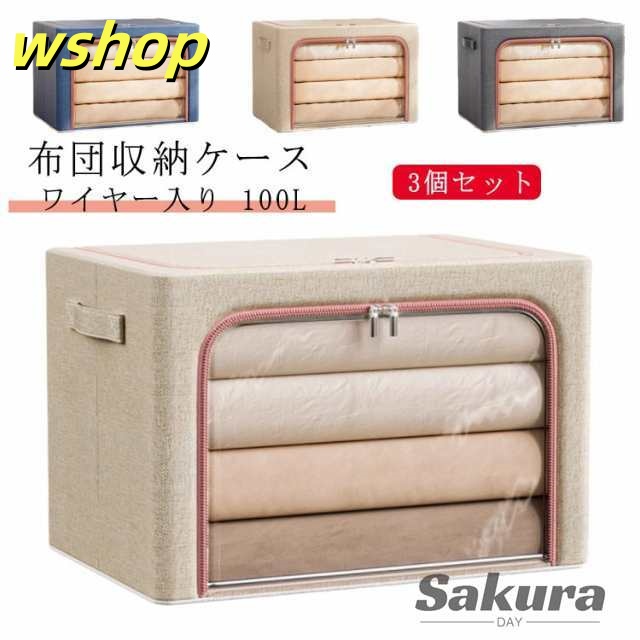 話題商品 レビュー高評価 収納袋 3個セット ボックス 収納ケース 持ち手付き 収納 】収納 衣類 布団 ワイヤー入り 大容量 押し入れ ぬいぐるみ おもちゃ クローゼット 100L 【wshop 布団ケース 丈夫 羽毛布団 衣類収納袋 折りたたみ 衣類収納 送料無料