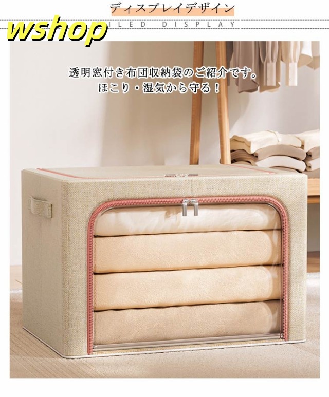 | 【商品名】布団収納ケース 【サイズ】 100L(60*42*40cm) 【素材】オックスフォード布、メタルワイヤー 【特徴】 水洗いOK! 透明窓付き布団収納袋のご紹介です。 ほこり・湿気から守る! 衣類、お客様用布団、シーズンオフの敷布団の収納にとっても便利です。 メタルワイヤーで自立するのでとっても便利です。 積み重ねて使用できるので、収納場所も無駄なく使うことができます。 上から、前から2方向取り出しも楽ちん♪ ダブルファスナー式ですので中身の出し入れが簡単です。 持ち手がついているので、持ち運びに便利。 使わないときはコンパクトに折りたためるので、わずかな隙間に収納可能。 北欧風はもちろん、和モダン、カフェ風、洋室、和室にも似合うオシャレな収納ボックス。 | |
