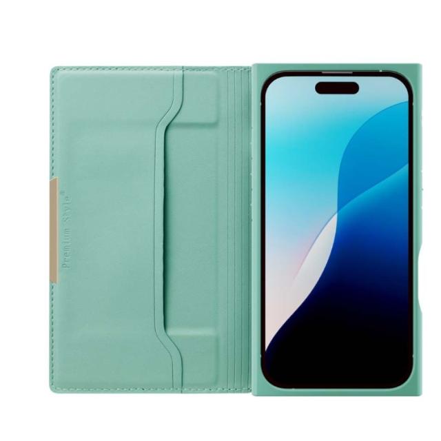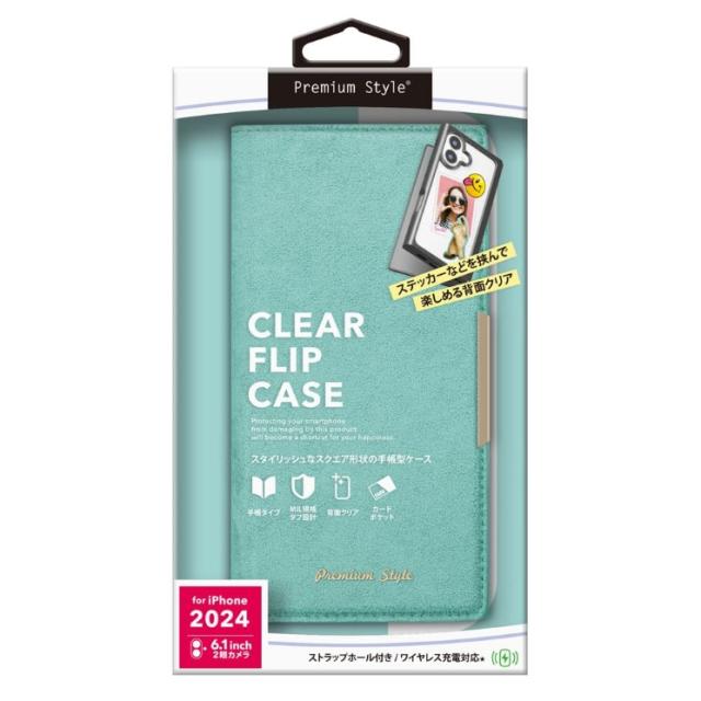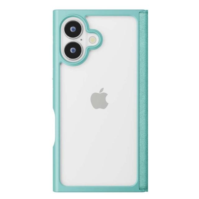 iPhone16 クリアフリップケース スエード調/ターコイズ PG-24ACF05BL
